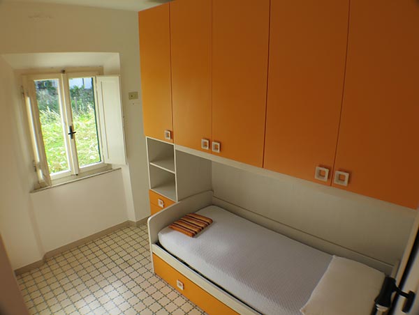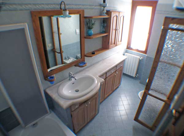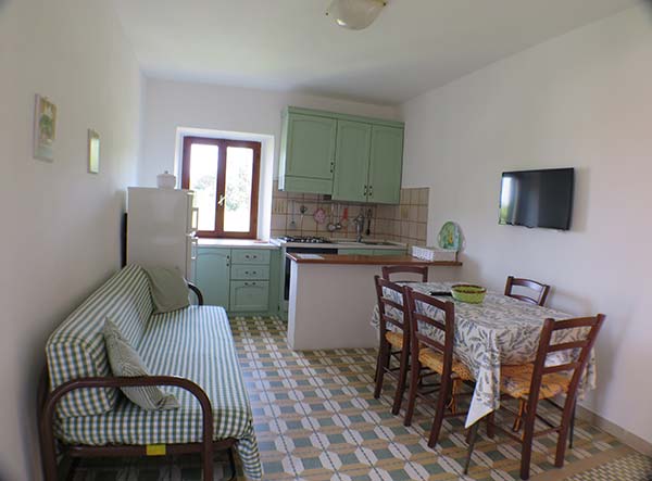 Soggiorno con TV e divano letto, angolo cottura – (rustico ed ampio), Bedroom matrimoniale, Bedroom con due letti singoli, Bagno con vasca, ripostiglio, Terrazza vista mare (ampia e con tavolo).
